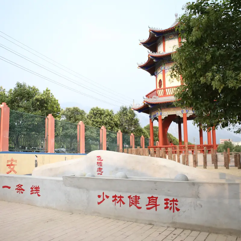 - Dedicated Shaolin Kung Fu training zones equipped with wooden dummies, iron palm bags, wooden posts, martial arts stone balls, and a full range of traditional weapons